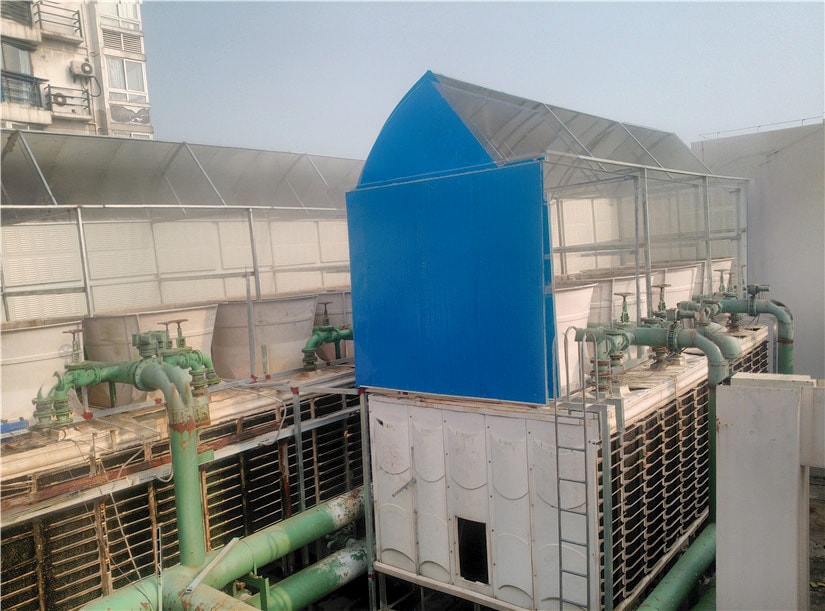 濟(jì)源天壇辦事處冷卻塔距離居民樓僅5米左右。對現(xiàn)場進(jìn)行的監(jiān)測表明:冷卻塔噪聲對一墻之隔的居民環(huán)境噪聲的貢獻(xiàn)較大。受委托,我司對該項目進(jìn)行治理。