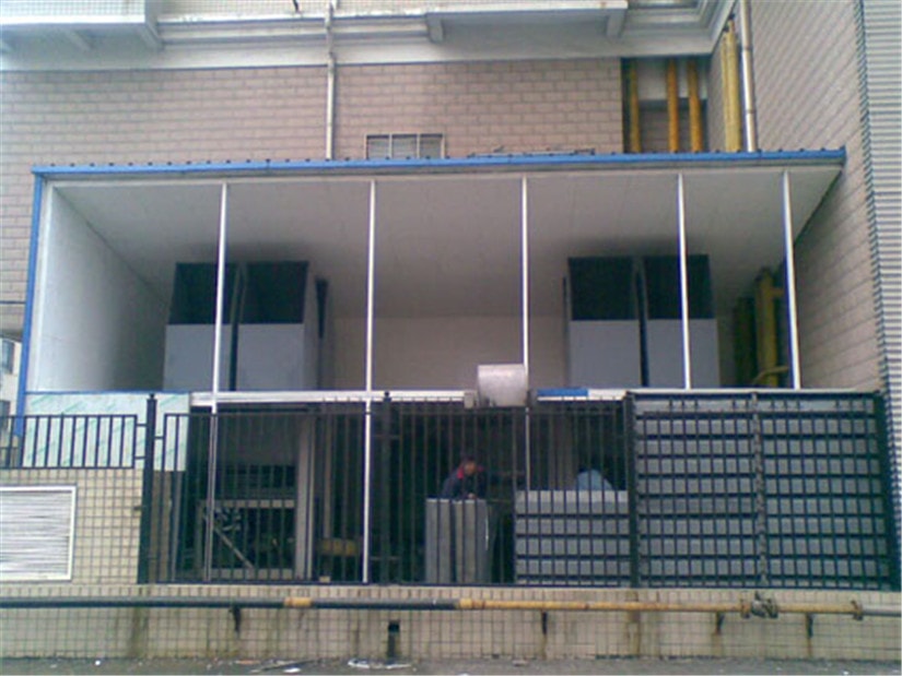 通過對噪音源進行測試和分析,根據噪音波頻的不同及現場實際情況,我公司通過設置機組半隔音罩,并在出風口安裝 消音器的治理方法有效降低設備噪音。