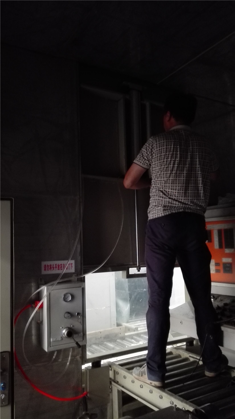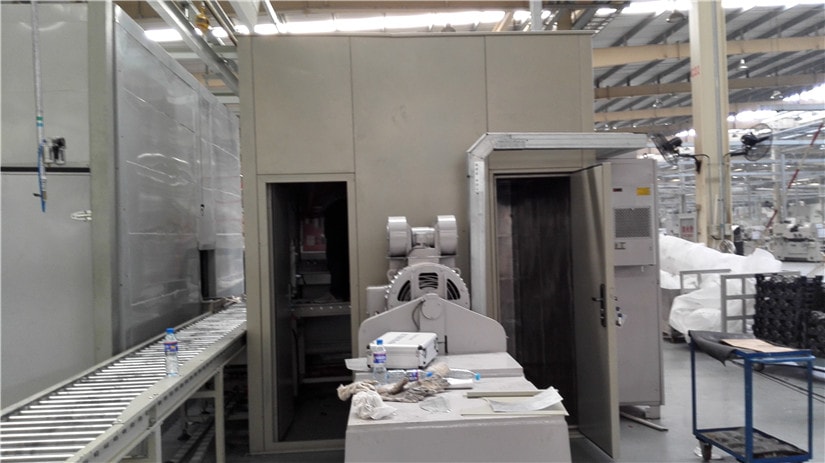 工程難點(diǎn):本項(xiàng)目中隔音房要有線體穿過,并且保證線體上工件自動(dòng)進(jìn)入隔音房。我公司根據(jù)甲方的要求在隔音房的合適位置設(shè)置自動(dòng)升降隔音門,實(shí)現(xiàn)與甲方線體的統(tǒng)一工作。