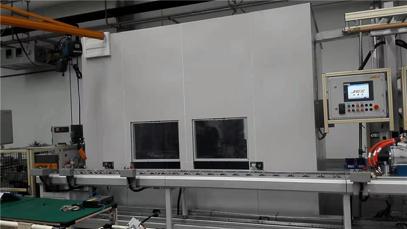 工程難點(diǎn):本項(xiàng)目中隔音房要有線體穿過,并且保證線體上工件自動進(jìn)入隔音房。我公司根據(jù)甲方的要求在隔音房的合適位置設(shè)置自動升降隔音門,實(shí)現(xiàn)與甲方線體的統(tǒng)一工作。
