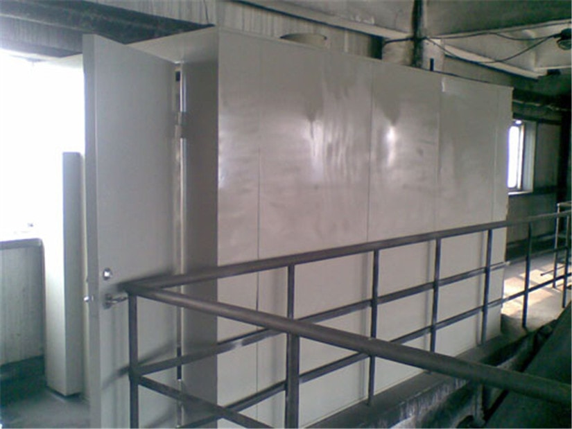 作為一種常規(guī)的噪聲控制方法,靜音室廣泛應(yīng)用于隔離車間噪聲,常見的有固定式和活動(dòng)式兩種。本項(xiàng)目中采用活動(dòng)式結(jié)構(gòu)。結(jié)構(gòu)上應(yīng)不影響場(chǎng)地布置與生產(chǎn)操作,容易拆裝和可觀察車間生產(chǎn)情況等。