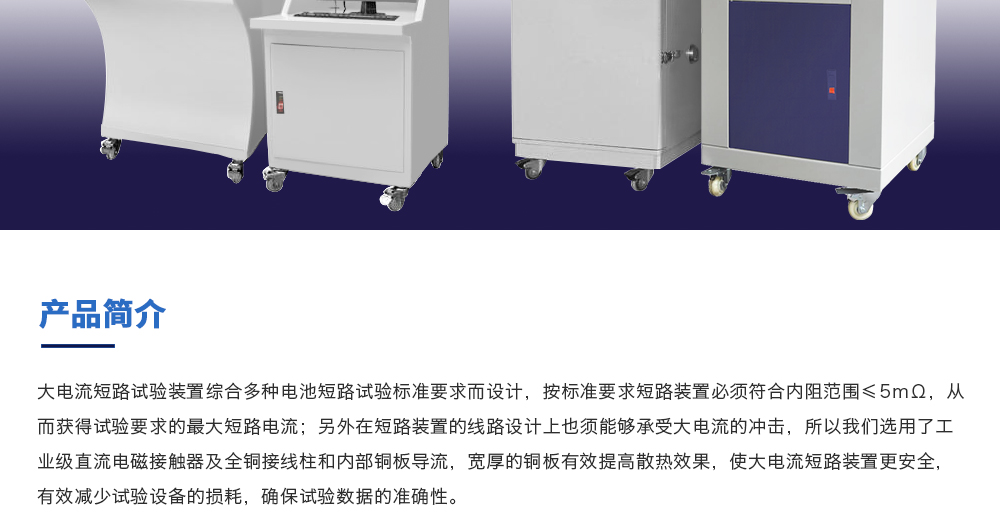 用途:大電流短路試驗裝置綜合多種電池短路試驗標準要求而設計,按標準要求短路裝置必須符合內阻范圍≤5mΩ,從而獲得試驗要求的最大短路電流;另外在短路裝置的線路設計上也須能夠承