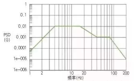 隨機振動試驗具體測試方法《GB/T 4857.23-2012》中有介紹,這里只介紹三個力學條件量值功率譜密度 (PSD)、加速度均方根 (Grms) 和振動時間。國內外通過采集運輸數(shù)據(jù),利用統(tǒng)計學制定出隨機振動譜。以ASTM D4169-08為例,如圖: